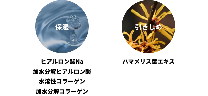 ヒアルロン酸・コーラゲンを配合し、大人の肌をしっかりうるおい&引きしめサポート。